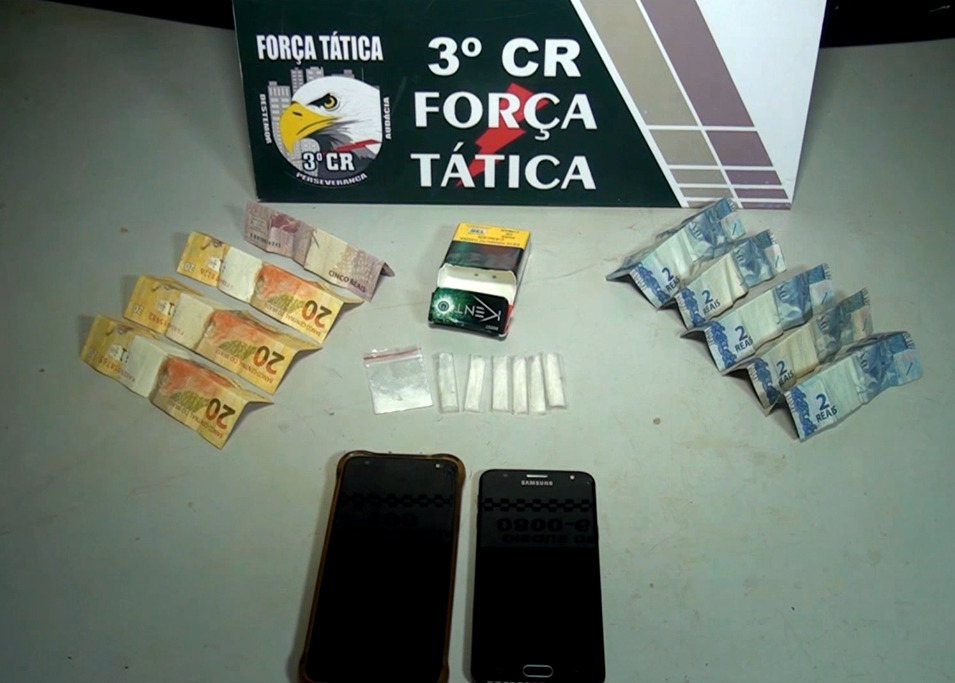 A Polícia Militar (PM) estava no Centro de Sinop, neste sábado (23), quando visualizou um casal com atitude suspeita e realizou a abordagem. Com eles foram encontrados porções de substancias análogas à cocaína e uma grande quantia em dinheiro.