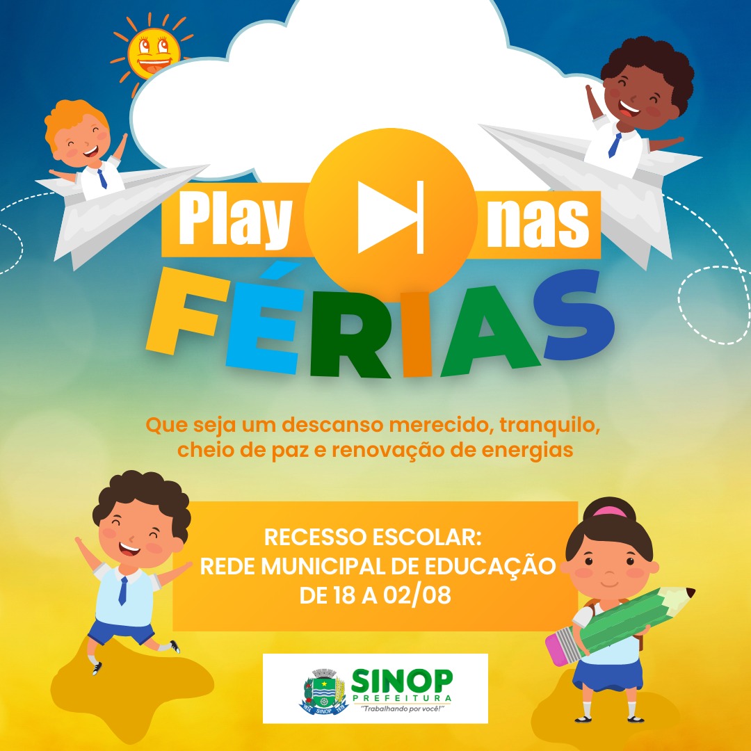 Alunos da rede municipal de educação estão em recesso escolar durante 15 dias. O período de intervalo começa hoje (18), retornando às aulas no dia 02 de agosto. Durante o recesso, os demais servidores da secretaria e do administrativo estarão à disposição, realizando atividades de caráter técnico e pedagógico nas unidades de ensino.