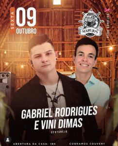 A Marujos drinkeria recebe hoje Gabriel Rodrigues e Vini Dimas com as melhores do sertanejo para acompanhar o variado cardápio de drinks do bar. A casa abre as 18h e será cobrado couvert artístico.