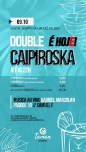 Na Taman bar, hoje tem double caipiroska até as 22h e o som ao vivo fica por conta de Gabriel Marcolan, Pagode 10 e Samuel F.