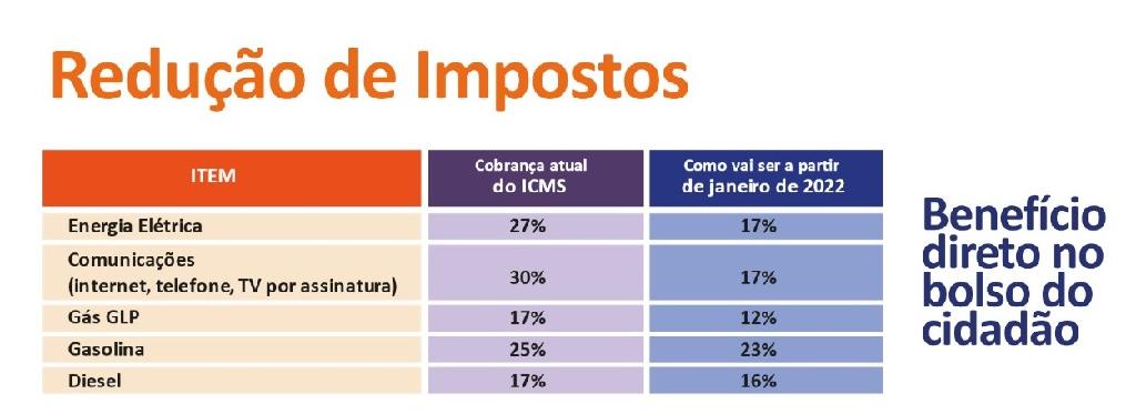 A lei sancionada pelo governador Mauro Mendes na última terça-feira (07.12) reduz ainda o tributo sobre itens como a energia elétrica (de 25% e 27% para 17% a todos os setores), dos serviços de comunicação, como internet e telefonia (de 25% e 30% para 17%) e do uso do sistema de distribuição da energia solar (de 25% para 17%).