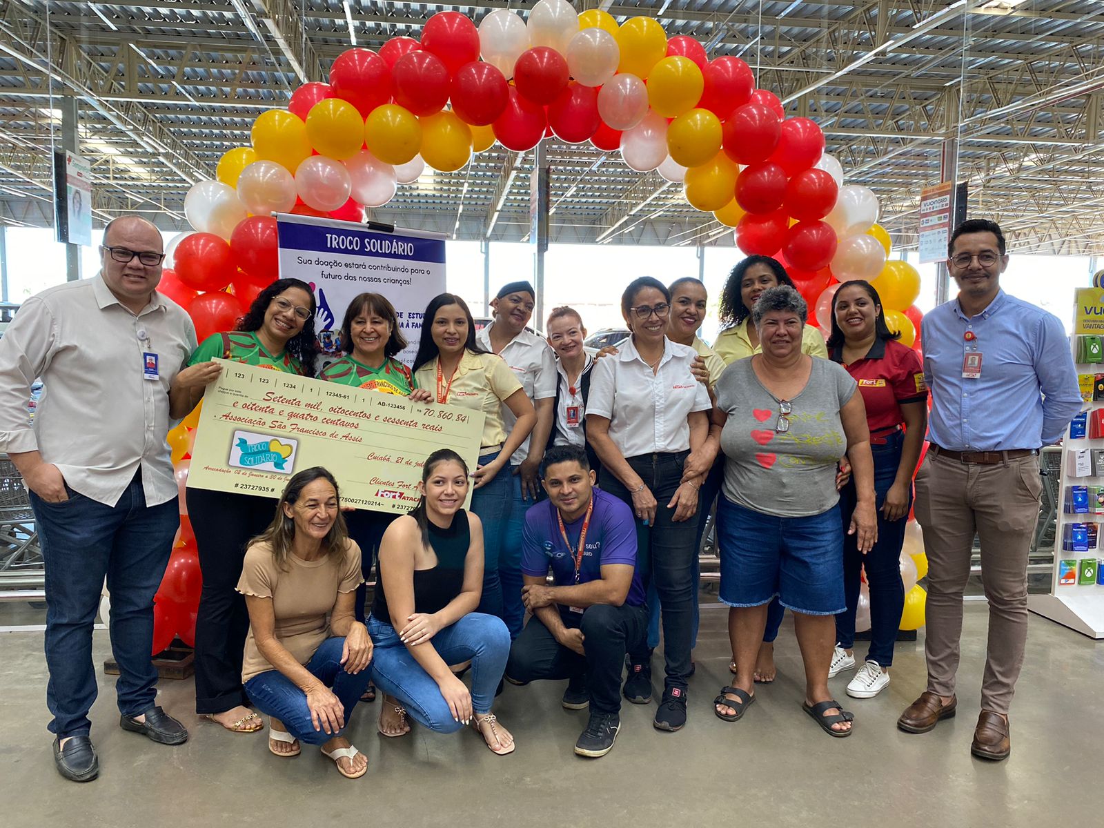 A Associação São Francisco de Assis, entidade filantrópica dedicada a auxiliar famílias carentes em Cuiabá, recebeu o valor de R$ 70.860,84 como resultado do Troco Solidário, promovida pelo Fort Atacadista. O valor corresponde à arrecadação do primeiro semestre de 2023, abrangendo os meses de janeiro a junho, e envolveu as quatro lojas da rede em Mato Grosso (três em Cuiabá e uma em Várzea Grande).