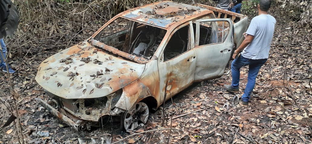 A polícia continua as buscas pelo restante da quadrilha. O veiculo foi encontrado queimado.