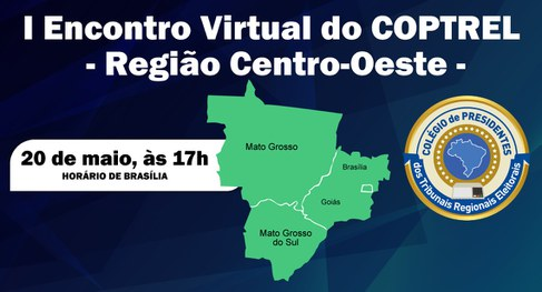 O I Encontro Virtual dos presidentes dos TREs da Região Centro-Oeste vai contar com a presença da atual Comissão Executiva do Coptrel, formada pelo desembargador Leonardo Cupello (presidente); desembargador Otávio Praxedes (vice) e presidente do TRE de Alagoas; desembargadora Luzia Nascimento (secretária) e presidente do TRE do Pará.