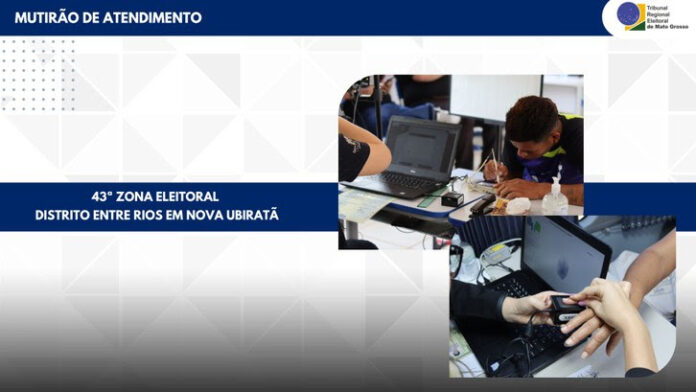 A 43ª Zona Eleitoral de Mato Grosso anuncia um importante mutirão de atendimento que beneficiará os eleitores e as eleitoras do distrito de Entre Rios, localizado no município de Nova Ubiratã/MT. A Escola Municipal Entre Rios será o ponto de realização desses serviços, agendados para o período de 27 de novembro a 1º de dezembro. O horário de atendimento será na segunda-feira, das 13h30 às 17h00, e de terça a sexta-feira, das 07h30 às 11h00 e das13h30 às 17h00.
