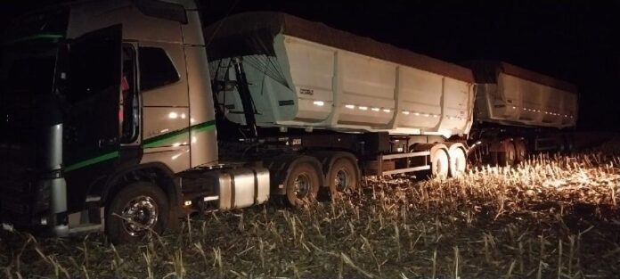 Neste momento, os suspeitos exigiram que a vítima se desfizesse da carga, para que levassem apenas o veículo. O homem estacionou a carreta em uma plantação de milho e começou a despejar parte da carga.