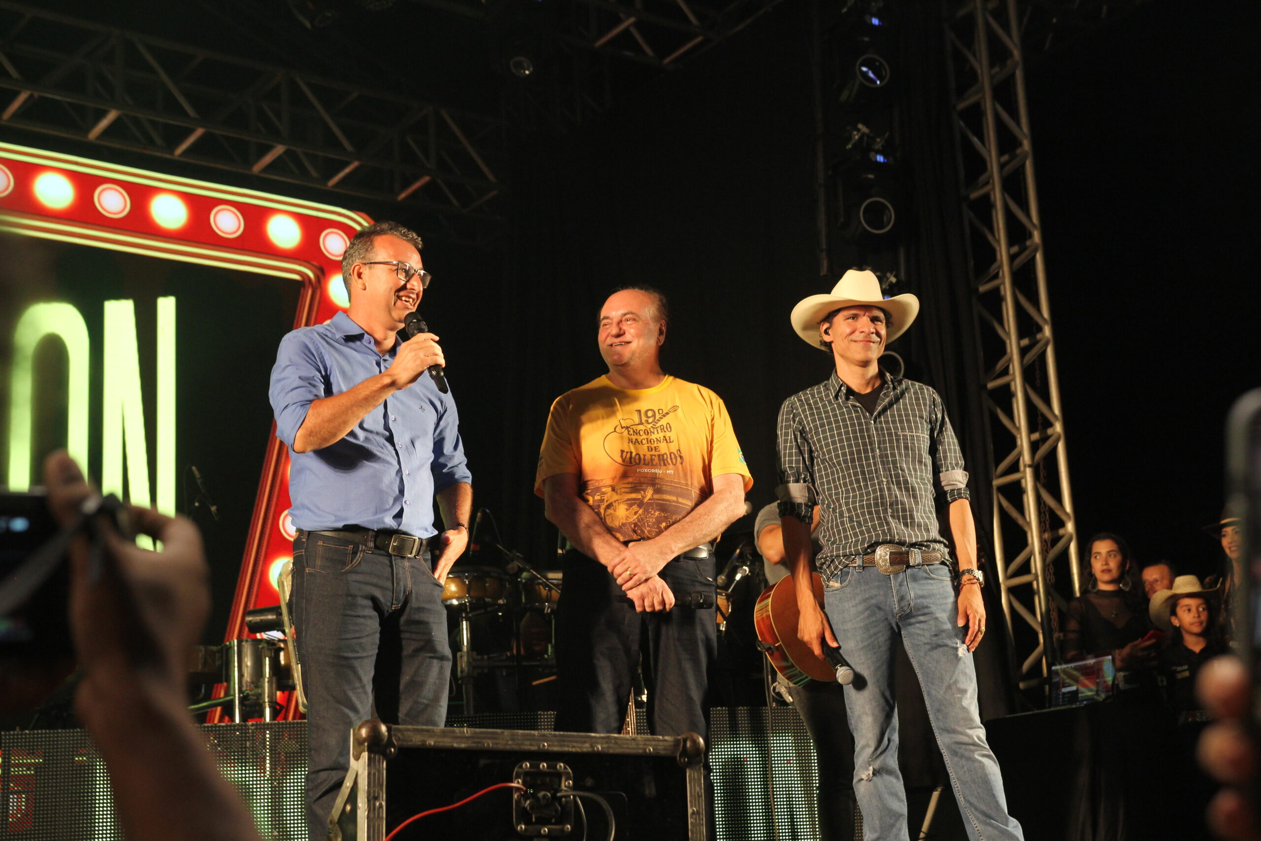 “É muito importante que ações como esta continuem acontecendo para que novos artistas ganhem notoriedade. Nós já estivemos no Encontro Nacional dos Violeiros de Poxoréu há mais de 15 anos, tocando na Concha Acústica. É um prazer imenso retornar com essa megaestrutura que vocês prepararam para nós”, destacou o cantor Jadson, da dupla Jads e Jadson, durante sua fala de agradecimento ao presidente do Sistema Fecomércio-MT, José Wenceslau de Souza Júnior e o prefeito da cidade, Nelson Paim. As autoridades foram convidadas para subirem ao palco para receberem a homenagem.