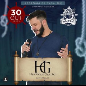 No Marujos Drinkeria o som é com Henrique Gratão com as melhores modas sertanejas e para acompanhar hoje tem double gin tonica. Amanhã o bar recebe Adeilton Nogueira, Gustavo Henrique e Leandro Monteiro e conta com promoção de duplo chopp a R$ 9,90