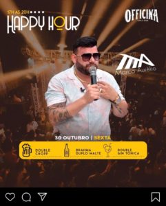 No bar Officina hoje tem Marco Aurélio, o happy hour vai até as 20h e conta com double-chopp e double gin tônica