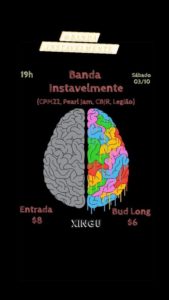 No sábado o palco é da banda Instavelmente que vai tocar um repertório com as melhores do CPM22, Pearl Jam, CBJR e Legião Urbana. O rolê é a partir das 19h e a entrada será R$ 8
