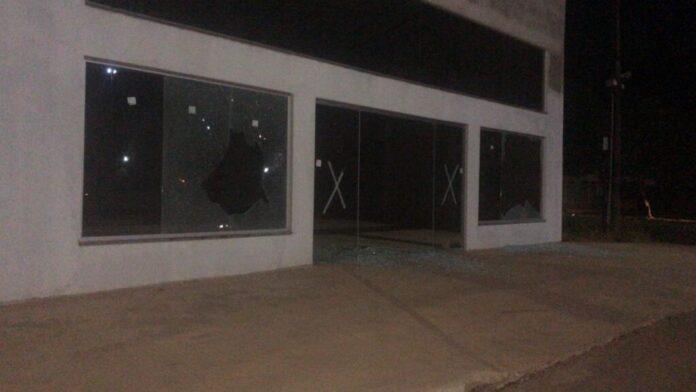 Vândalos quebraram portas e janelas de pelo menos dez estabelecimentos comerciais na madrugada de domingo (09), em Sinop (500 km de Cuiabá).